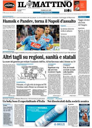 Il Mattino: Torna il Napoli d’assalto con Hamsik e Pandev. Vince anche la Juve che però soffre e beneficia di alcuni episodi arbitrali