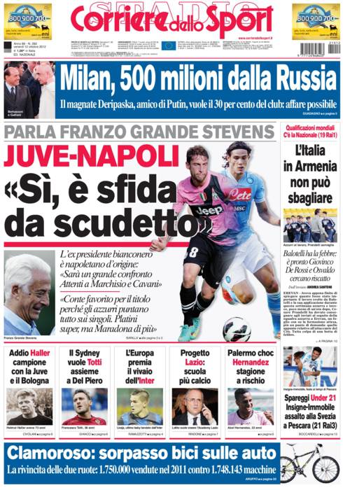 Il Corriere dello Sport: Franzo Grande Stevens, ex presidente bianconero di origini napoletane, ritiene Juve – Napoli una sfida scudetto