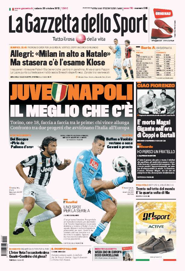 La Gazzetta dello Sport: Juventus – Napoli, il meglio che può offrire il calcio italiano