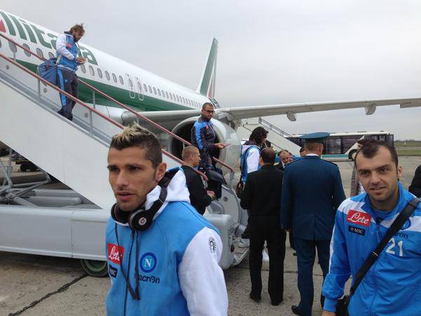 Il Napoli è appena sbarcato in Ucraina per la partita di giovedì sera di Europa League contro il Dnipro. Grande entusiasmo all’aeroporto di Dnepropetrovsk dove circa trenta ucraini hanno accolto con tanto calore gli azzurri come riferisce il profilo ufficiale ‘Twitter’ della squadra.