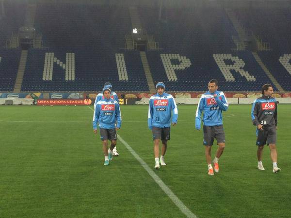 Il Napoli è già al lavoro per preparare al meglio la sfida di domani sera contro il Dnipro. Dopo la conferenza stampa di Mazzarri e Mesto la squadra ha iniziato immediatamente l’allenamento di rifinitura. Ecco alcune foto tratte dal profilo ‘Twitter’ della società:
