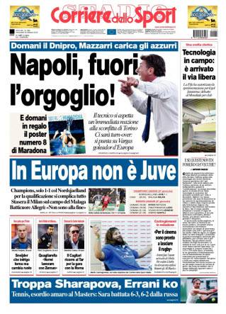 Corriere dello Sport: Il Napoli è chiamato ad un immediato riscatto domani sera nella sfida di Europa League contro il Dnipro