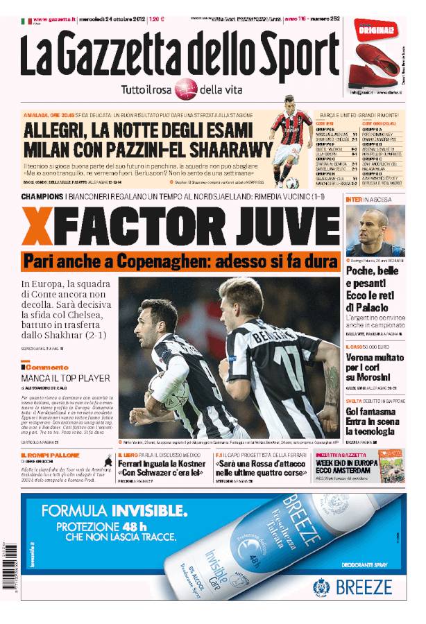 Gazzetta dello Sport: Ancora un pareggio per la Juventus in Champion’s League. Decisivo il prossimo turno contro il Chelsea
