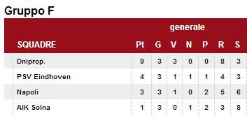 Sotto di un gol fino al minuto 80, il Psv riesce ad agguantare il pareggio contro l’Aik Solna ad Eindhoven. Un risultato a sorpresa nel girone, soprattutto dopo aver conosciuto il valore delle due squadre: se Mertens e compagni contro il Napoli avevano dato una grande prova di forza, seppur di fronte alle seconde linee azzurre, di certo non ci si aspettava che gli svedesi (visti al San Paolo) strappassero il pareggio proprio in casa del Psv; un punto per parte che tiene ancora aperto il discorso qualificazione. Se il Dnipro fa corsa a se a punteggio pieno con 9 punti, dietro è bagarre con Psv a 4, Napoli a 3 e Aik a quota 1. Insomma il pareggio di Eindhoven tiene ancora in vita gli azzurri che ora avranno il vantaggio di giocare in casa due gare: uno fra queste è proprio contro gli olandesi, che sono gli avversari da battere, a questo punto, per arrivare secondi.