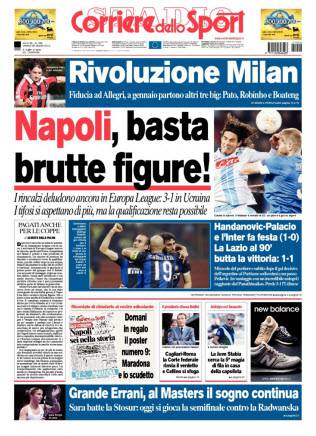 Corriere dello Sport: Le seconde linee del Napoli deludono ancora perdendo 3-1 in Ucraina; i tifosi vogliono di più ma resta aperta la qualificazione