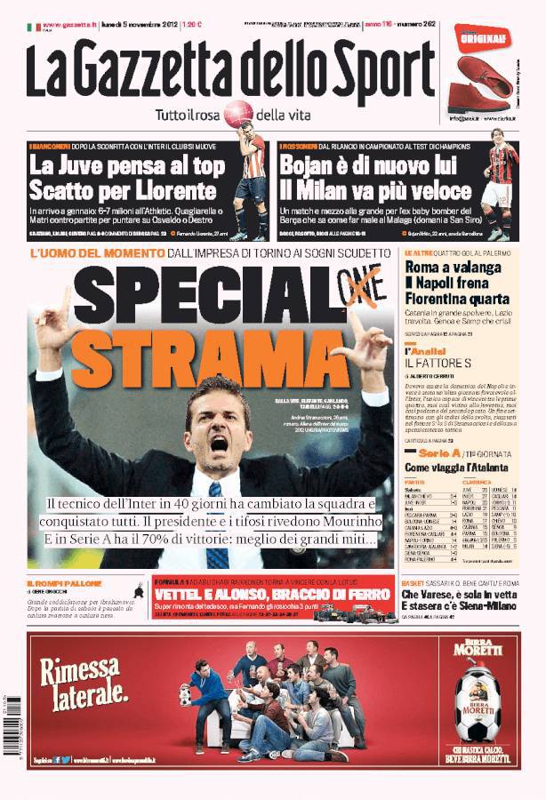Gazzetta dello Sport: Special Strama, il tecnico nerazzurro fa rivedere in lui le gesta di Mou: in serie A ha il 7% delle vittorie