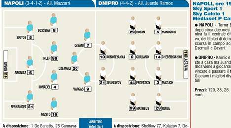 Nonostante le critiche sarà ancora una volta il Napoli 2 protagonista della serata di Europa League contro il Dnipro. Con qualche eccezione s’intende, in particolare quella che riguarda Edinson Cavani, schierato dal primo minuto al fianco di Vargas. Tra i titolarissimi anche Inler a centrocampo; per il resto Totò Aronica guiderà al difesa tentando di farsi perdonare sin da subito l’errore di domenica scorsa, così come proverà a riscattarsi Rosati tra i pali; la nota lieta è rappresentata anche dal ritorno dall’infortunio di Britos che gioca dal primo minuto.