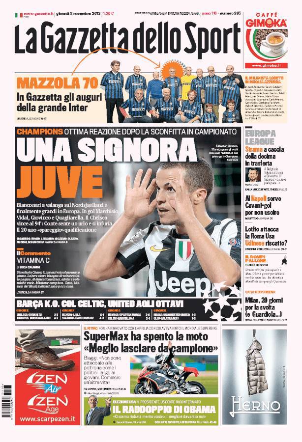 RASSEGNA STAMPA – Le prime pagine dei quotidiani sportivi 08/11/201208/11/2012 di Antonio Papa Corriere dello Sport: Gazzetta dello Sport: Il Mattino: CLICCA QUI PER ESSERE SEMPRE AGGIORNATO SUL TUO NAPOLI! A.I.