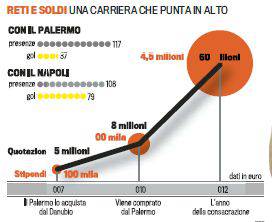 La Gazzetta dello Sport riporta la storia dell’evoluzione tattica di Edinson Cavani. Al Palermo nasce da esterno e non segna tantissimo; poi la svolta. Se Napoli può godersi il suo matador, lo deve solo ed esclusivamente a Walter Mazzarri, a colui che l’ha fortemente voluto tre estati fa e che ne ha avviato l’evoluzione tattica. «L’ho voluto, perché ho visto in lui un attaccante centrale, che definisce il vertice offensivo», ha spiegato più volte l’allenatore. Negli anni di Palermo (i primi in Italia), infatti, giocava in una posizione diversa, sulle fasce, parecchio lontano dall’area di rigore. «Ho ereditato un giocatore che faceva l’esterno di centrocampo», spiega Davide Ballardini, l’allenatore che poi gli ha cambiato posizione. «La sua media gol era di 3-4 a stagione. Poi, lo affiancai a Miccoli e da quel momento la sua crescita è stata costante. Adesso si sta completando, sta migliorando le qualità tecniche. Stiamo parlando di uno generoso, di un giocatore che lavora molto per la squadra. I paragoni con Messi e Cristiano Ronaldo? Cavani è Cavani, non si può accostare a nessuno, le sue doti fisiche e tecniche non consentono paragoni. I 79 gol di Cavani rappresentano quella continuità che il Napoli non aveva sotto rete dai tempi della Ma.Gi.Ca., di Maradona, Giordano e Careca. Mazzarri ha insegnato al Matador i movimenti negli ultimi 20 metri, gli ha trasmesso quella cattiveria che non guasta mai quando c’è da fare a sportellate con gli avversari. E lui, con quel fisico scolpito che ha, s’impone di forza oltre che con l’intelligenza. Un attaccante con le sue caratteristiche è sempre stato uno dei punti di forza delle squadre di Mazzarri. Basti ricordare Cristiano Lucarelli al Livorno, Rolando Bianchi alla Reggina e Giampaolo Pazzini alla Sampdoria. Ed è intorno a Cavani che l’allenatore ha costruito l’undici dei titolarissimi che ha come obbiettivo il ritorno in Champions League. «Ho sempre pensato che potesse essere un giocatore di buon livello, ma che potesse arrivare a questi livelli no, non ci ho mai creduto ». La confessione è di Maurizio Zamparini, l’uomo che l’ha portato in Italia.