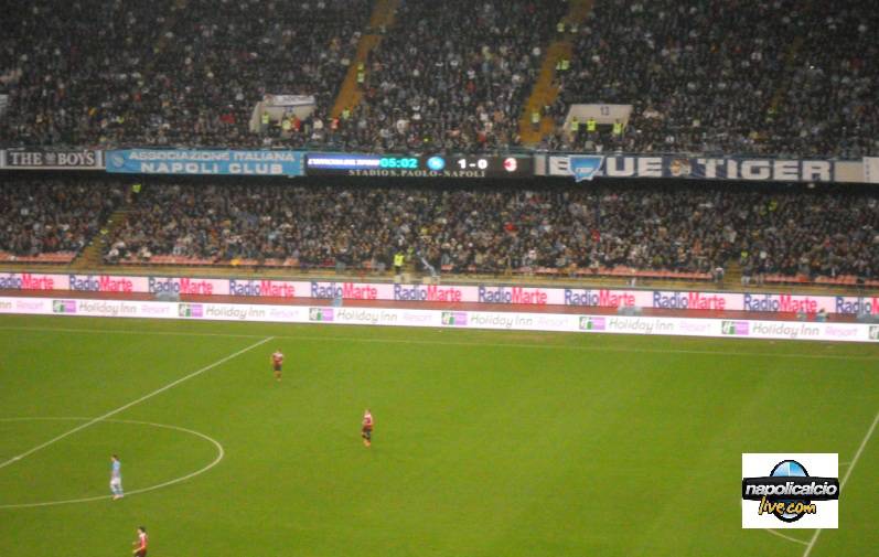Dopo tanti anni i tifosi che frequentano lo stadio San Paolo hanno finalmente potuto godere di un display. In attesa dei tabelloni veri e propri, ieri allo stadio saltava all’occhio la novità: due schermi lunghi circa 16 metri, che fornivano tra le altre cose, notizie di trasporto pubblico e passavano sponsor; oltre alle informazioni per cui sono stati allestiti: formazioni nel pre-gara, cronometro e punteggio fissi nel corso dei 90 minuti. L’unico inconveniente è stato il fatto che i cronometri si fermassero, in ciascuno dei due tempi, a 45.00; i tifosi non hanno potuto godere anche dello scorrere dei minuti di recupero. Vero è che accade anche in molti altri stadi italiani, che però almeno hanno i mega-tabelloni a supportare qualsiasi altra mancanza. Un dettaglio, certo, ma…non si trattava di schermi tecnologicamente avanzati, costati centomila euro l’uno?