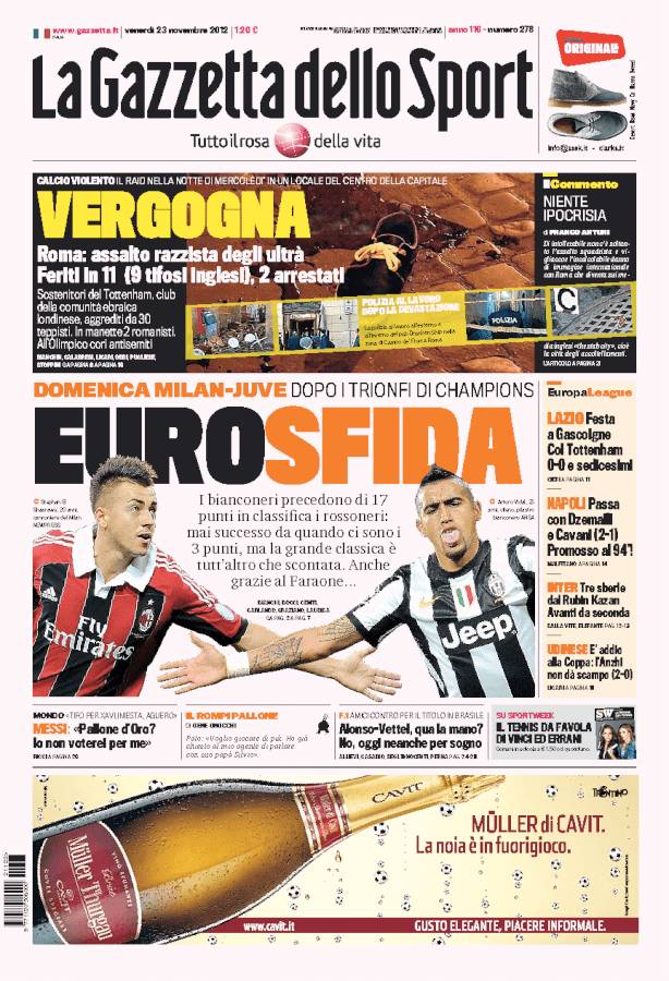 RASSEGNA STAMPA – Le prime pagine dei quotidiani sportivi 23/11/2012 di Antonio Papa CLICCA QUI PER ESSERE SEMPRE AGGIORNATO SUL TUO NAPOLI! A.I.