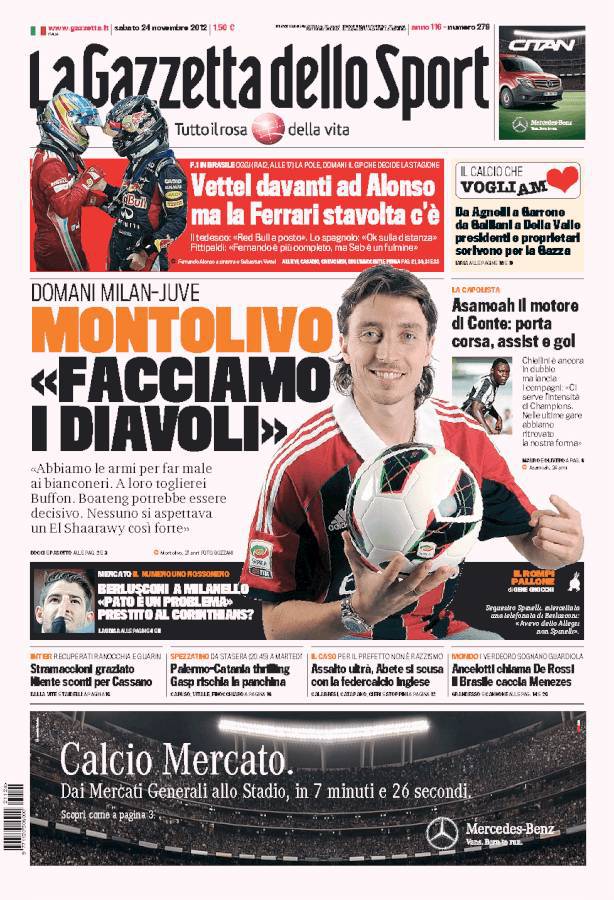 RASSEGNA STAMPA – I titoli dei quotidiani sportivi 24/11/2012 di Antonio Papa CLICCA QUI PER ESSERE SEMPRE AGGIORNATO SUL TUO NAPOLI! A.I.