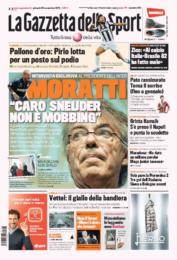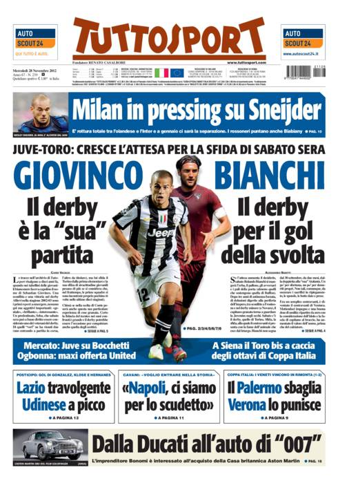 RASSEGNA STAMPA – Le prime pagine dei quotidiani sportivi 29/11/201229/11/2012 di Antonio Papa CLICCA QUI PER ESSERE SEMPRE AGGIORNATO SUL TUO NAPOLI A.I.