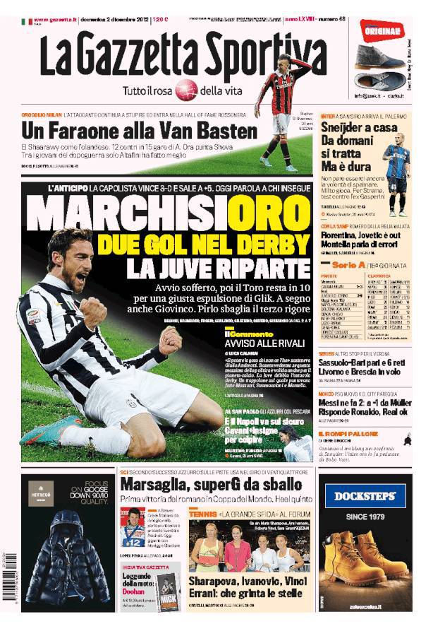 La Gazzetta dello Sport: Marchisio decisivo nel derby