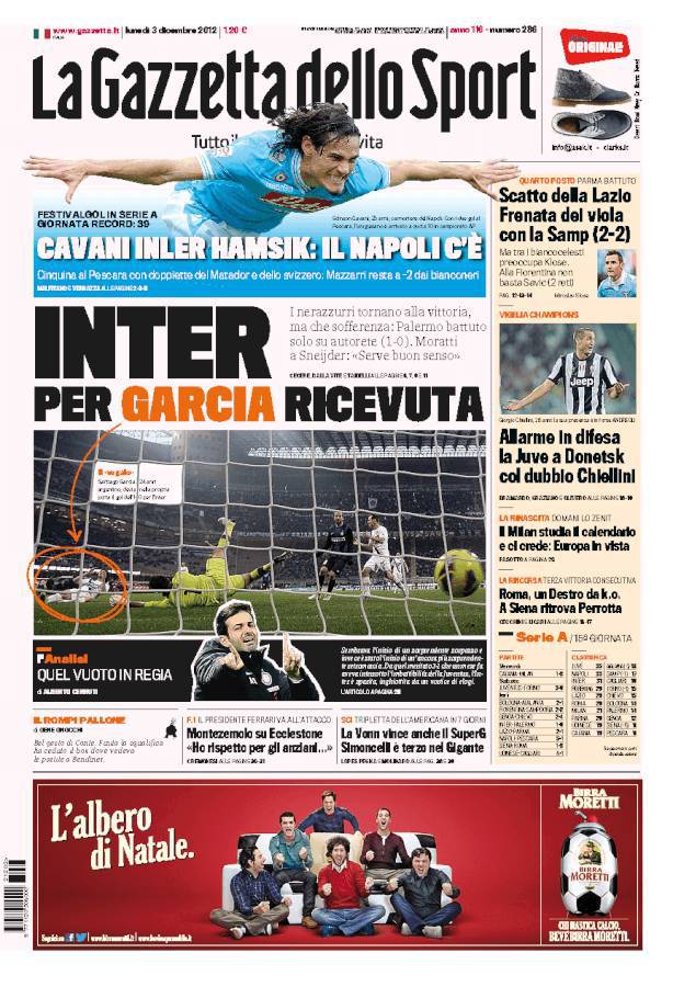 Il Mattino: Il Napoli si riporta soli due punti dalla Juventus