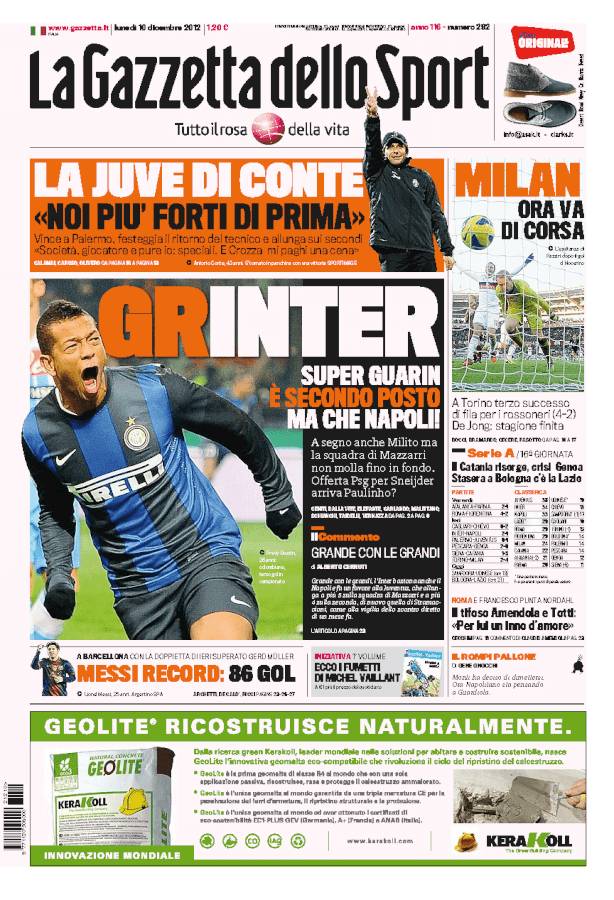 La Gazzetta dello Sport: L’Inter vince, ma che Napoli!