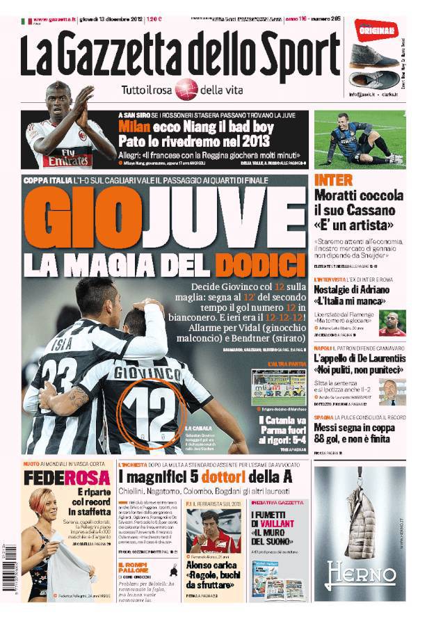 RASSEGNA STAMPA – Le prime pagine dei giornali sportivi 13/12/201213/12/2012 di antoizzo CLICCA QUI PER ESSERE SEMPRE AGGIORNATO SUL TUO NAPOLI A.I.