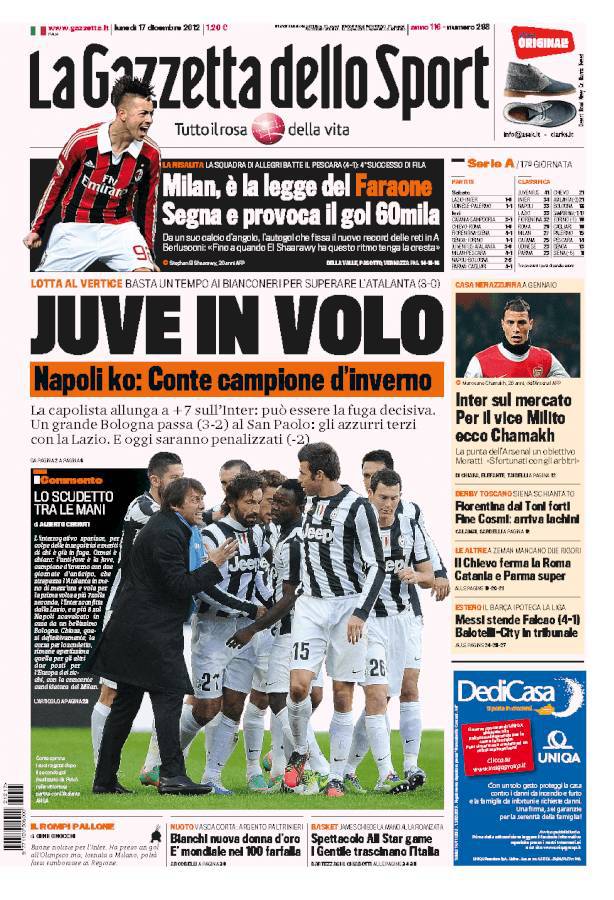 RASSEGNA STAMPA – Le prime pagine dei giornali 17/12/201217/12/2012 di vincenzomatino CLICCA QUI PER ESSERE SEMPRE AGGIORNATO SUL TUO NAPOLI VM