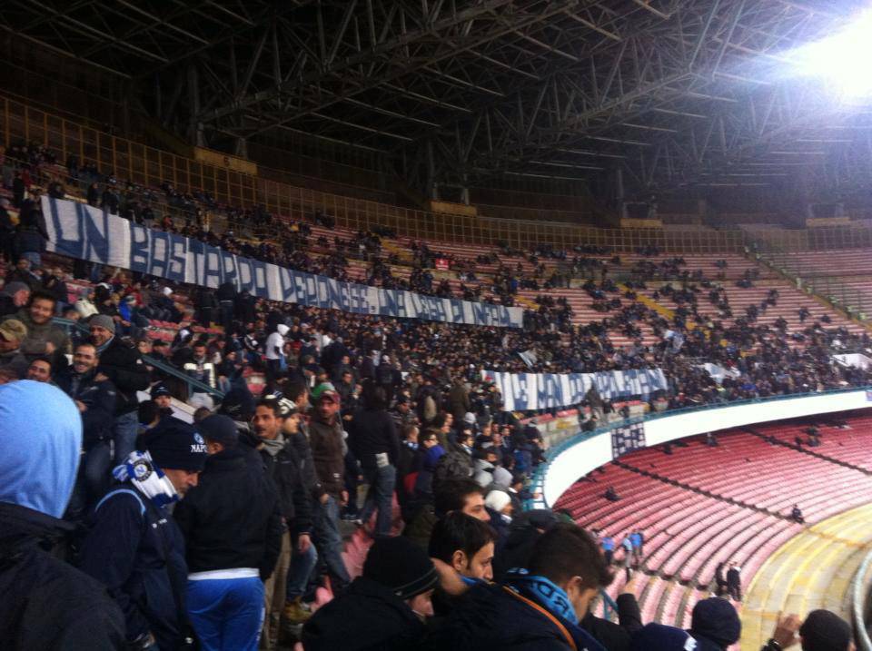 “Un bastardo veronese, una lega di infami: giù le mani dai napoletani”. Ecco cosa recita lo striscione esposto dai tifosi azzurri prima che cominciasse il match di Coppa Italia contro il Bologna. Nonostante il San Paolo è quasi deserto, quei pochi tifosi hanno voluto subito farsi sentire. Inoltre sono stati aiutati anche da Cavani che ha celebrato il suo gol con una maglia bianca con su scritto i nomi dei due calciatori coinvolti: Cannavaro e Grava. Anche Mazzarri ha poi mostrato questa maglia a tutto lo stadio.