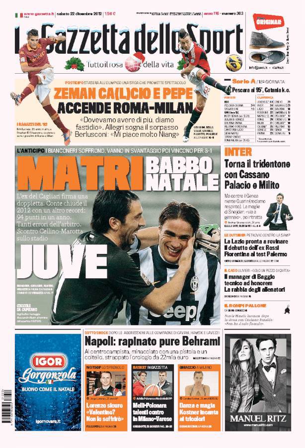 RASSEGNA STAMPA – Le prime pagine dei giornali 22/12/201222/12/2012 di vincenzomatino CLICCA QUI PER ESSERE SEMPRE AGGIORNATO SUL TUO NAPOLI!