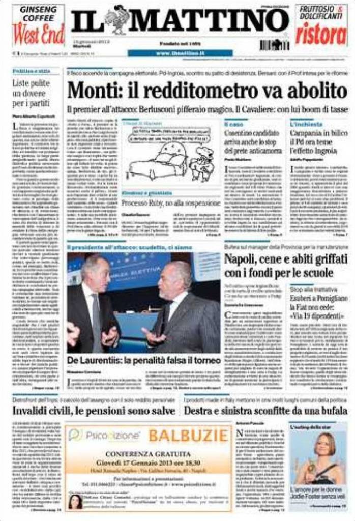 RASSEGNA STAMPA – Le prime pagine dei giornali 15/01/201315/01/2013 di vincenzomatino CLICCA QUI PER ESSERE SEMPRE AGGIORNATO SUL TUO NAPOLI! VM