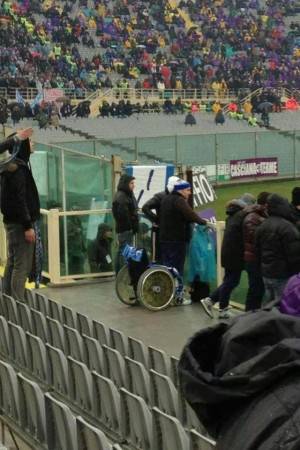 Quanto accaduto oggi durante Fiorentina – Napoli è un qualcosa di sensazionale: un tifoso, presumibilmente del Napoli, si alza dalla propria sedia a rotelle per guardare meglio le azioni di gioco.
