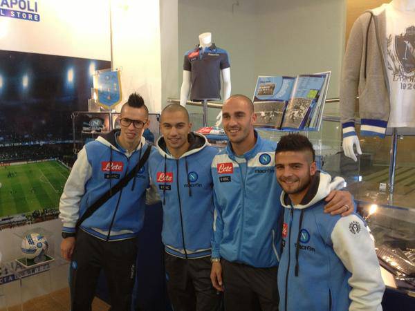 Il profilo ufficiale Twitter del Napoli ha pubblicato una foto di Hamsik, Insigne, Cannavaro e Inler all’Official Store della squadra azzurra a Capodichino prima di partire per Parma.