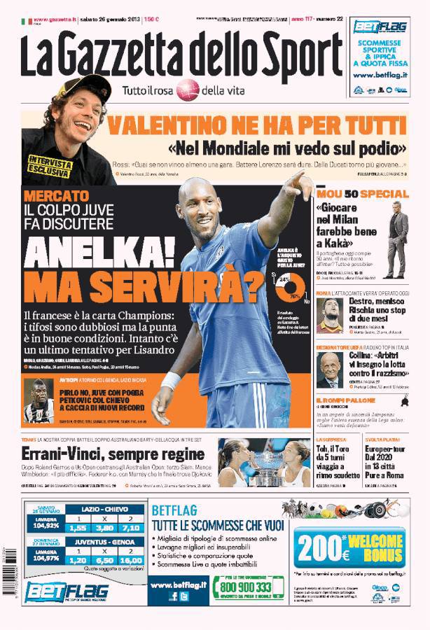 RASSEGNA STAMPA – Le prime pagine dei quotidiani sportivi 26/01/201326/01/2013 di antoizzo A.I. CLICCA QUI PER ESSERE SEMPRE AGGIORNATO SUL TUO NAPOLI!