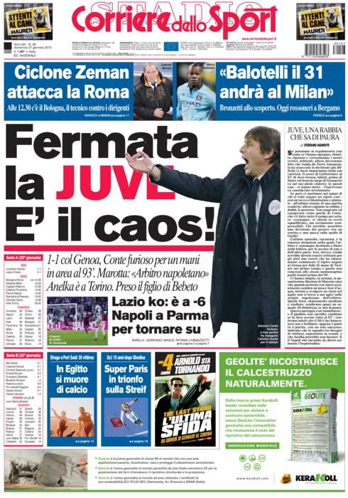 RASSEGNA STAMPA – Le prime pagine dei giornali 27/01/201327/01/2013 di vincenzomatino VM CLICCA QUI PER ESSERE SEMPRE AGGIORNATO SUL TUO NAPOLI!