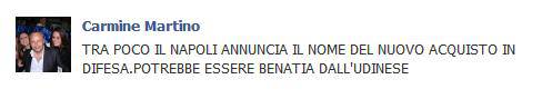 Clamorosa notizia dell’ultim’ora: il Napoli avrebbe acquistato Benatià dall’Udinese. A riferirlo è il giornalista Carmine Martino attraverso questo tweet: