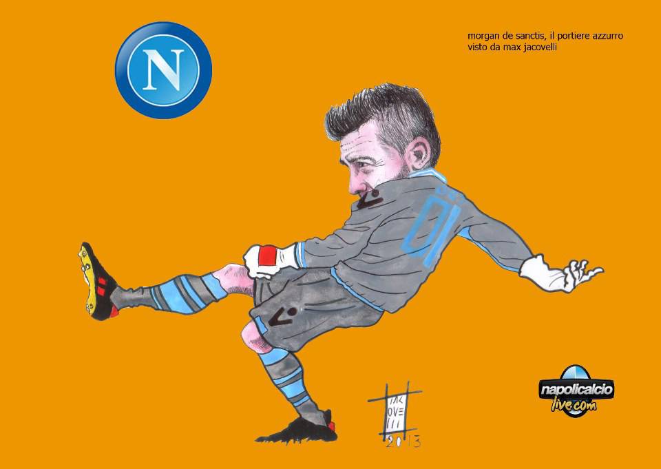 Morgan De Sanctis sempre amato, nel bene o nel male. I tifosi azzurri non possono dimenticare le tante prodezze che il portierone ha regalato nelle ultime stagioni. Anche dopo gravi errori come quello di Firenze. Max Jacovelli, in collaborazione con Napolicalciolive.com, vi propone una bella caricatura dell’estremo difensore partenopeo: