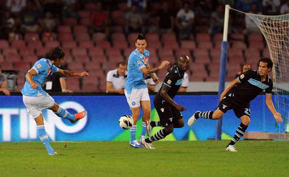 26 settembre 2012, quinta giornata di campionato: al San Paolo va in scena il big match tra Napoli e Lazio. Si decide quale squadra è degna antagonista della Juve per lo scudetto. Gli azzurri stravincono e lanciano la sfida ai bianconeri: lo scudetto è tra Nord e Sud, come ai tempi di Maradona. Il Napoli viene da una brutta prestazione contro il Catania e deve assolutamente vincere per distaccarsi dalla Lazio, la quale si trova ad un solo punto dai parenopei. La sfida inizia subito con un brutto spavento per gli azzurri: dagli sviluppi di un calcio d’angolo, Miroslav klose, marcato stretto da Campagnaro, riesce a toccare il pallone con un pugno e spingerlo in rete. Il ‘povero’ Banti, ignaro di quanto accaduto, sembra decretare il vantaggio biancoceleste quando, improvvisamente, Klose decide di assecondare l’ira partenopea svelando all’arbitro il trucco utilizzato per spingere la palla in rete: gol annullato tra la gioia dei tifosi che esultano come a un gol di Cavani. Gol che arriva pochi minuti dopo su un tiro deviato che entra imparabilmente in rete. Il Napoli passa in vantaggio al 19° minuto. Pochi minuti ancora e su un lancio preciso di capitan Cannavaro, il ‘Matador‘ è libero di scaricare tutta la sua potenza con un destro che piega i polsi al malcapitato Marchetti: Napoli due, Lazio zero. Dopo un pò di sofferenza ad inizio ripresa, gli azzurri riescono nuovamente a schiacciare la Lazio con azioni imprevedibili ed esaltanti, come quella che li porta sul definitivo tre a zero: siamo al 19° della seconda frazione di gioco, quando Campagnaro vede liberissimo Cavani il quale salta Marchetti e spinge in rete la sua ennesima tripletta. Poco importa se a 15 minuti dalla fine il ‘Matador’ sbaglia il rigore del suo poker personale. Il Napoli stravince e mette paura agli squadroni del Nord. Come ai vecchi tempi, come ai tempi di Maradona.