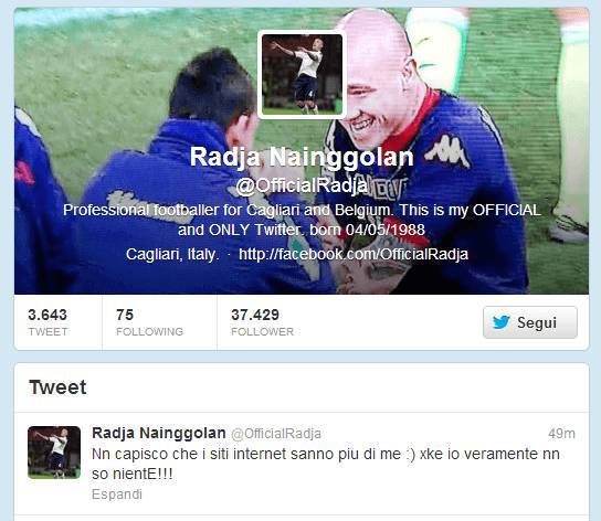 La notizia riportata dalla ‘Gazzetta dello Sport’, secondo cui Radja Nainggolan avrebbe già trovato l’accordo con De Laurentiis (CLICCA QUI PER LEGGERE LA NEWS) viene smentita dal diretto interessato che sul proprio profilo twitter scrive: “Nn capisco che i siti internet sanno piu di me :) xke io veramente nn so nientE!!!