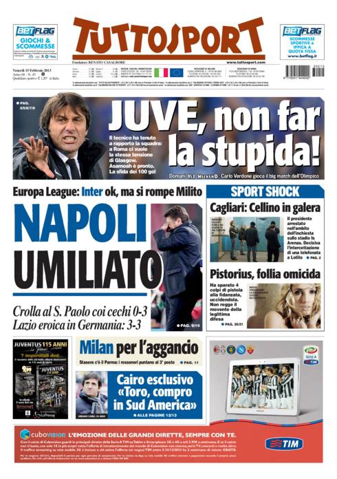 RASSEGNA STAMPA – Le prime pagine dei quotidiani sportivi 15/02/201315/02/2013 di antoizzo Le prime pagine dei principali quotidiani sportivi in edicola A.I.