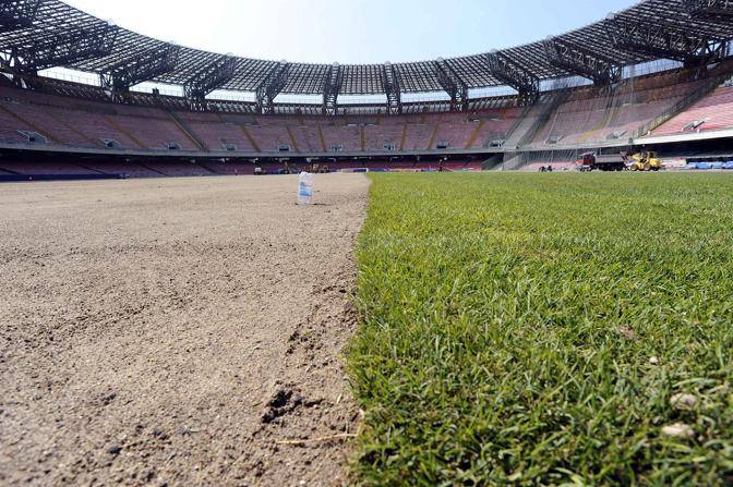 Il manto erboso del San Paolo è scandaloso. Lo stesso Mazzarri, come tutti i calciatori, ha più volte ribadito la necessità di un lavoro immediato per porre rimedio al tale situazione. E così, da pochi giorni sono iniziati i lavori di rizzollatura del campo al fine di presentare un manto erboso all’altezza del big match tra Napoli e Juventus. I lavori proseguono e Napolicalciolive.com è andata all’interno dello stadio per vedere a che punto sono.