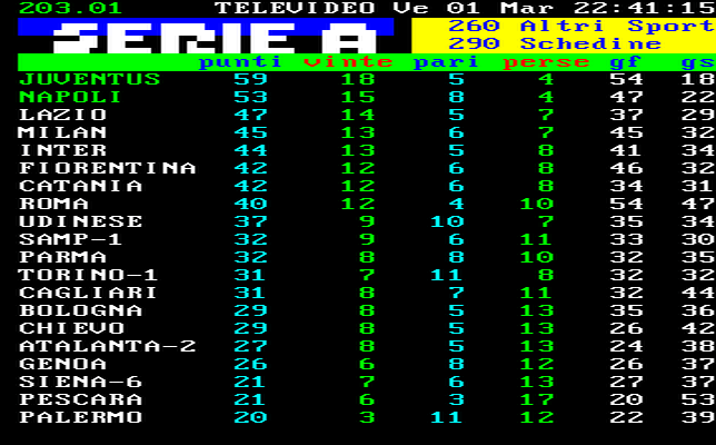 FOTO CLASSIFICA – Napoli-Juventus 1-1, la vetta resta lontana 6 punti 01/03/2013 di vincenzomatino Questa la classifica dopo il pareggio contro la Juventus: