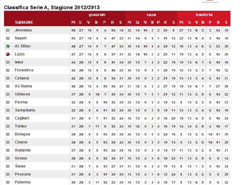 Ecco la classifica così come la presenta ‘Il Corriere dello Sport’: