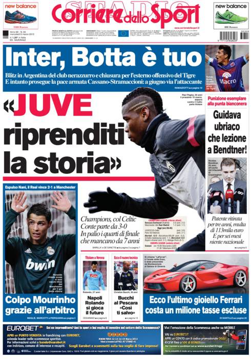 RASSEGNA STAMPA – Le prime pagine dei quotidiani sportivi