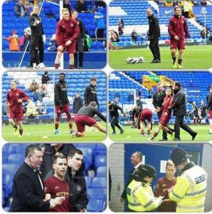 Indossa la divisa del City e fa riscaldamento con i suoi idoli. E’ l’incredibile episodio avvenuto prima del match che la squadra di Mancini ha disputato in casa dell’Everton. L’intrepido tifoso si è intrufolato nel rettangolo di gioco ed ha cominciato a riscaldarsi, come se nulla fosse, accanto ai Citizens che guardavano stupiti. Fin quando è stato intercettato dagli addetti alla sicurezza che lo hanno condotto fuori dal campo.