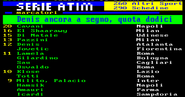 Nonostante il digiuno di gol nelle ultime sei partite, Cavani ha mantenuto la leadership della classifica dei cannonieri, sfruttando anche il ‘rallentamento’ di El Shaarawy. Oggi il ‘Matador’ è tornato a ruggire e ha allungato il suo vantaggio sul milanista. Sale anche Denis, che si attesta tra i primi sei bomber a quota 12 reti, a dimostrazione del grande campionato che sta disputando.