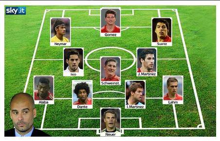 I club italiani e quelli europei possono iniziare a tremare. Secondo quanto riporta ‘Sky’, il prossimo allenatore del Bayern Monaco Pep Guardiola sta già lavorando a quella vorrebbe sia la sua formazione titolare nella prossima stagione. Un undici veramente invidiabile.