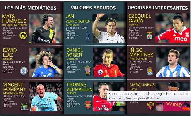 Per molti è la squadra più forte di tutti i tempi e recentemente il Milan è stato sfortunato protagonista della loro furia. Stiamo parlando dello strepitoso Barcellona di Leo Messi e compagni, che non ha alcuna intenzione di fermarsi e, secondo quanto riportato dal ‘Mundo Deportivo’, punta alcuni grandi obiettivi del reparto difensivo centrale in vista dell’apertura del prossimo mercato. Tra questi troviamo il romanista Marquinhos e il tedesco, seguito di recente dal Milan, Mats Hummels. Sulla vostra sinistra potete ammirare tutti gli obiettivi dei ‘blaugrana’.