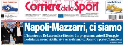 Il giorno dopo Roma-Napoli, ci sarà il rompete le righe. Parliamo del 20 maggio; prima di allora l’incontro decisivo tra De Laurentiis e Mazzarri ci sarà già stato. Prima della fine del campionato si dovranno delineare i programmi futuri, sperando che non si arrivi all’ultima giornata con la qualificazione Champions ancora in ballo. Già, perché il futuro di Mazzarri al Napoli sembra legato a doppio filo a questo aspetto; come riferisce il ‘Corriere dello Sport’, sarà fondamentale ottenere la qualificazione nell’Europa dei ‘grandi’ per proseguire il rapporto.