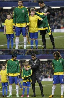 FOTO – Bel gesto di Julio Cesar che regala la sua felpa ad un bambino infreddolito 25/03/201325/03/2013 di Antonio Papa Julio Cesar regala la sua felpa a uno dei bambini che hanno accompagnato il Brasile in campo stasera allo Stamford Bridge contro la Russia. Ecco la foto:
