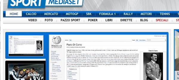 Tifosi del Sunderland in rivolta per l’arrivo sulla panchina di Paolo Di Canio. Su Facebook è spuntato il gruppo ‘Sunderland contro i fascisti’, mentre su Wikipedia la pagina del tecnico era stata ‘hackerata’ con la foto di Hitler, come si vede nella seguente foto di ‘sportmediaset’.