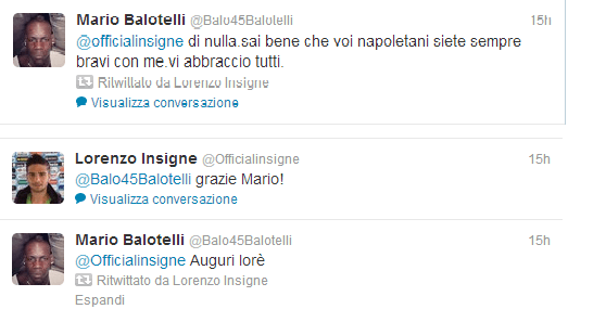 FOTO TWITTER – Balotelli fa gli auguri a Lorenzo Insigne per la nascita del piccolo Carmine 05/04/2013 di Antonio Papa Un gesto d’affetto di Mario Balotelli nei confronti di Insigne da poco diventato padre del piccolo Carmine. Ecco l’immagine tratta da Twitter: