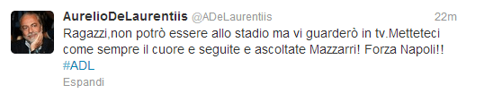 FOTO TWITTER – De Laurentiis non sarà al San Paolo, ma suona la carica con un messaggio 07/04/201307/04/2013 di Antonio Papa Il match di stasera contro il Genoa sarà molto importante per gli azzurri. Così, De Laurentiis fa alcune raccomandazioni alla sua squadra in vista della partita. Ecco l’immagine tratta da Twitter: M.G.