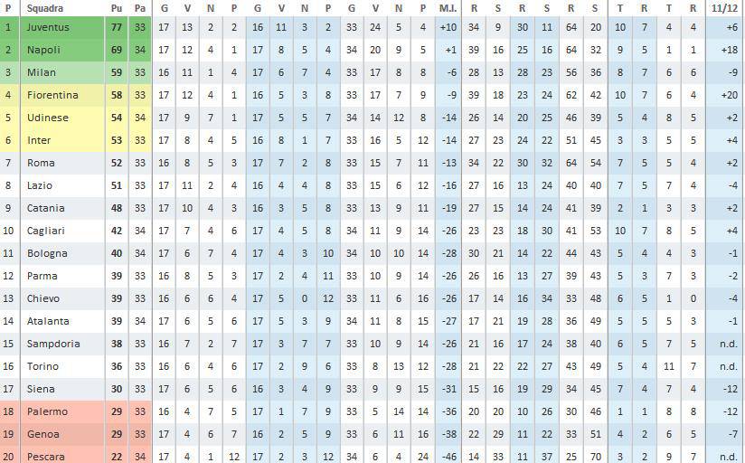 FOTO – Ecco la classifica comparata all’anno scorso: Crescita esponenziale degli azzurri 28/04/2013 di vincenzomatino ‘Sky Sport’ ha stilato la classifica comparata con l’anno scorso, dalla quale si evince una crescita straordinaria del Napoli di Mazzarri: