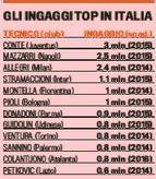 ‘La Gazzetta dello Sport’ ha stilato la classifica degli allenatori più pagati della Serie A. A guidare la speciale classifica è Antonio Conte con 3 milioni netti a stagione, a seguire Mazzarri e Allegri. Sorpresa Montella che costa solo 1mln nonostante l’ottimo campionato disputato con la Fiorentina.