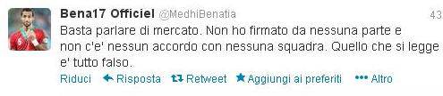 FOTO – Benatià si sfoga su Twitter: “Basta parlare di mercato, quello che si legge è falso” 02/10/201501/05/2013 di Mario D'Amiano Ecco il tweet di Benatià, difensore dell’Udinese, che allontana qualsiasi voce di mercato: M.D.A.